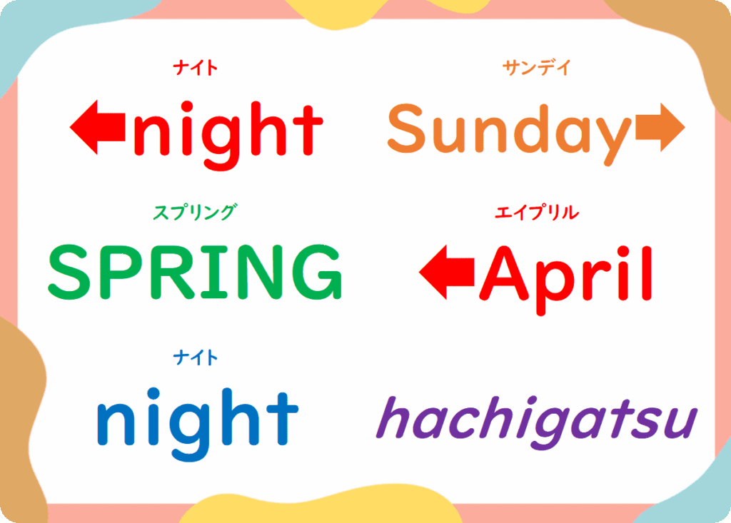 Vol.2には名詞(月・曜日・季節・時間帯・方角)を収録しています。