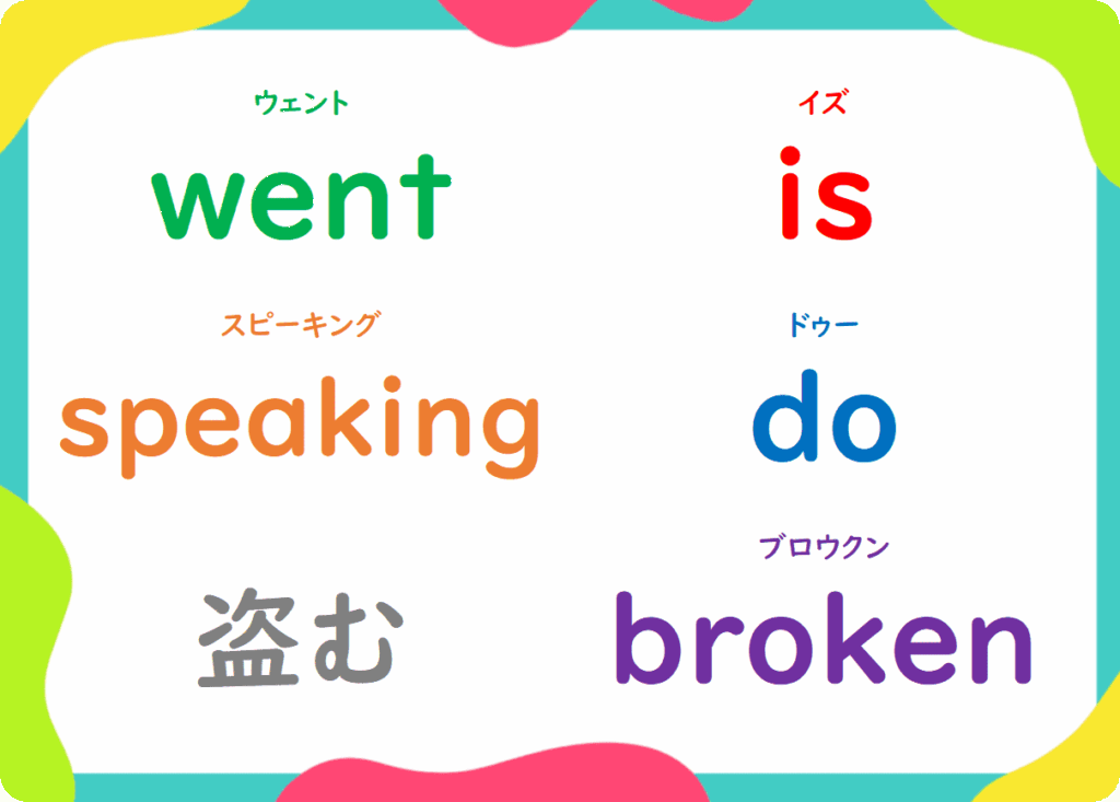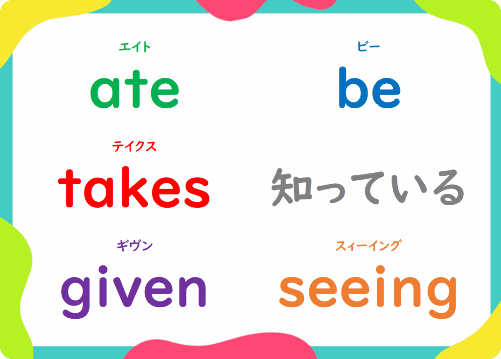 原形』『過去形』『過去分詞形』『3人称単数現在形』『ing形』『黒:日本語