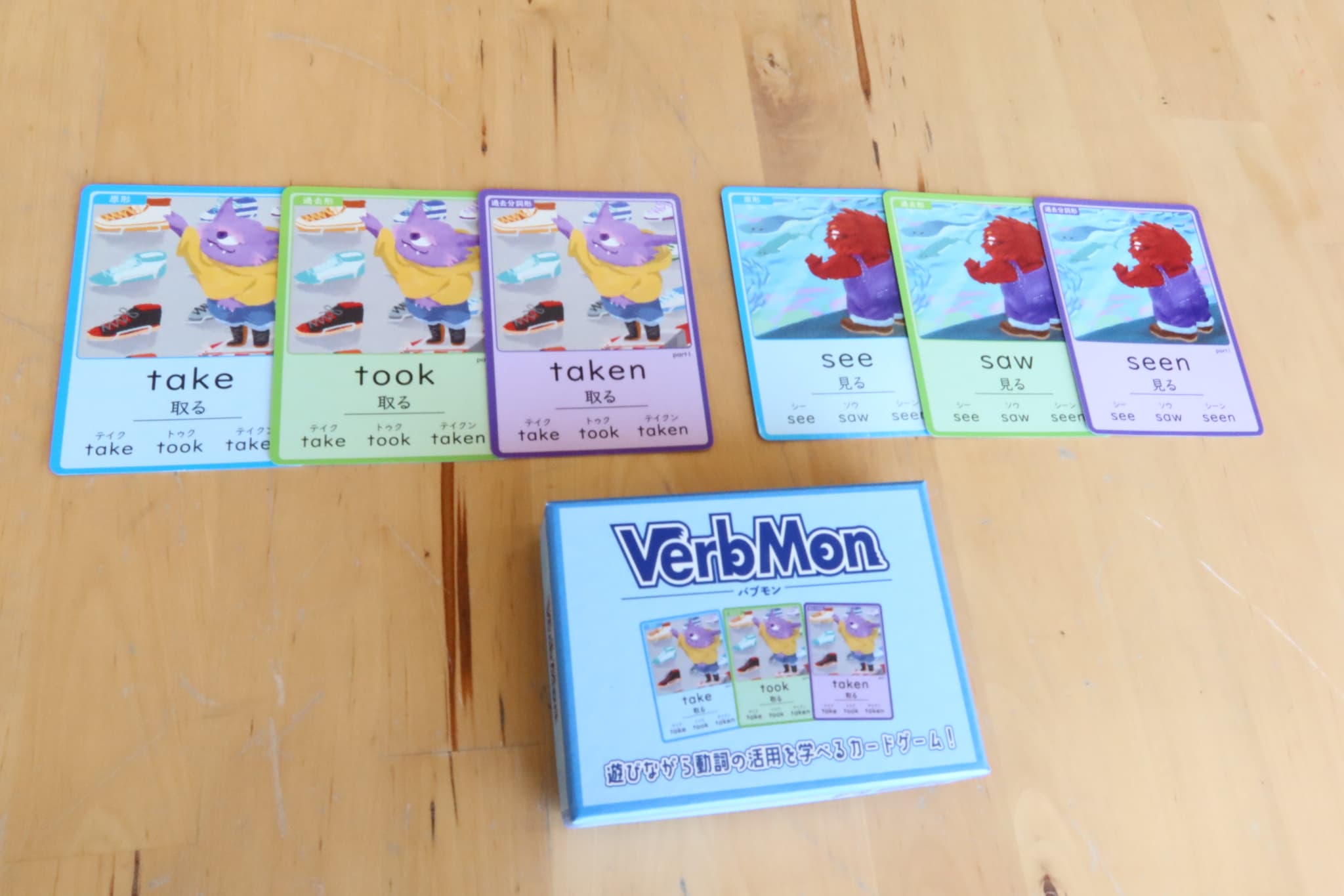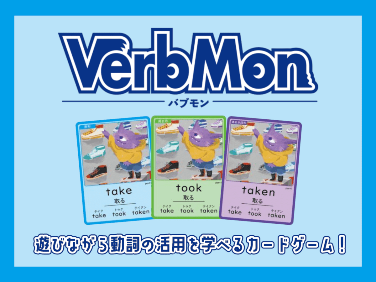 動詞の活用(原形・過去形・過去分詞)を遊びながら覚えられるカードゲームです。